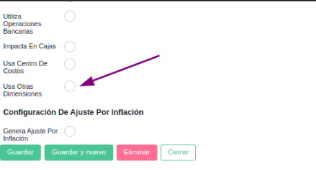 -Ingresar al maestro de cuentas y colocar el check de “Usa otras dimensiones”