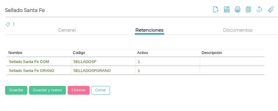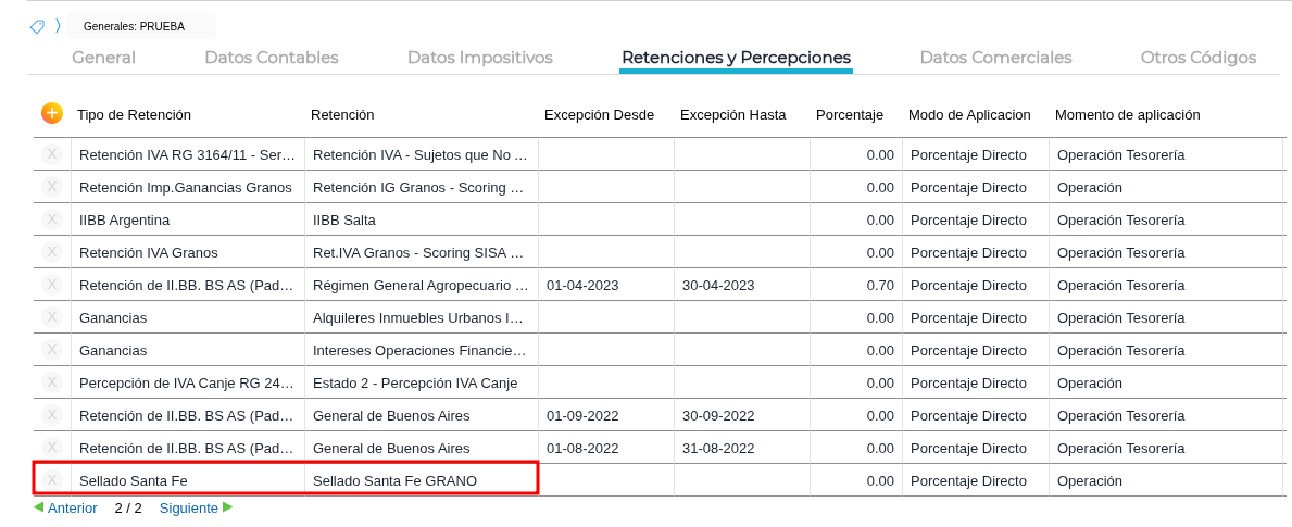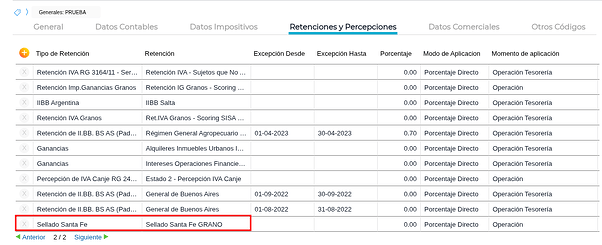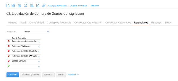 Luego, ingresar al tipo de documento de liquidación y agregar la retención en la solapa Retenciones: