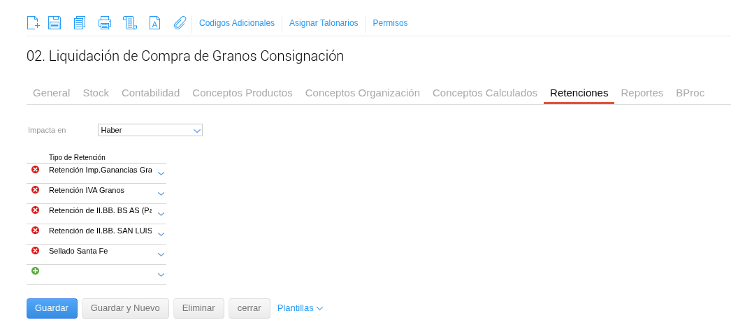 En las Liquidaciones Primarias de Granos existen dos solapas: Conceptos y Retenciones. En general, los Conceptos se informan a ARCA como Otras Deducciones y las Retenciones como retenciones