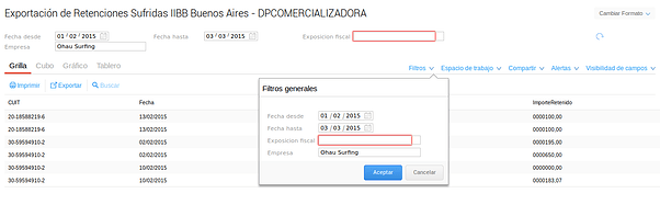 Exposición fiscal: retenciones sufridas IIBB Buenos Aires.