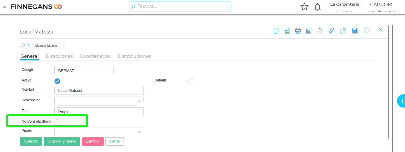Ruta: Gestión empresarial > Inventarios > Maestros > Depósitos