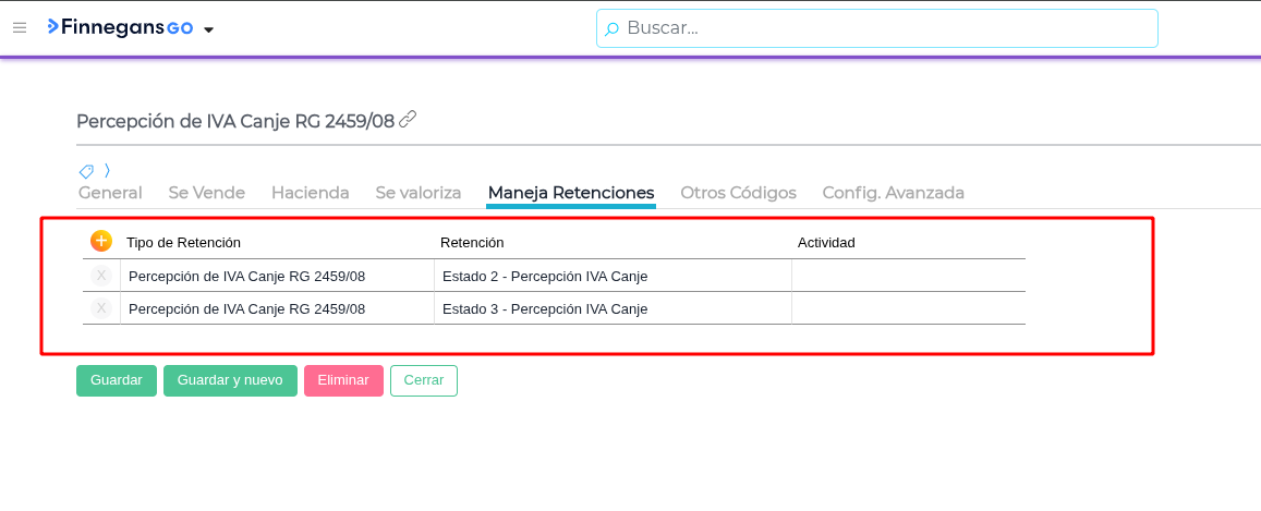 Aquí vamos a plasmar las retenciones configuradas dentro del tipo de retención “Percepción de IVA Canje RG 2459/08” del primer punto.* -
