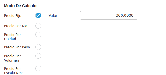 Modo de cálculo: Precio Fijo.