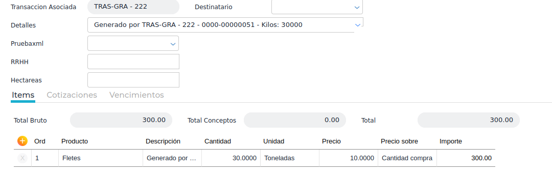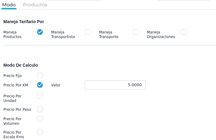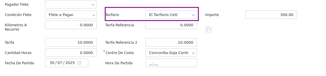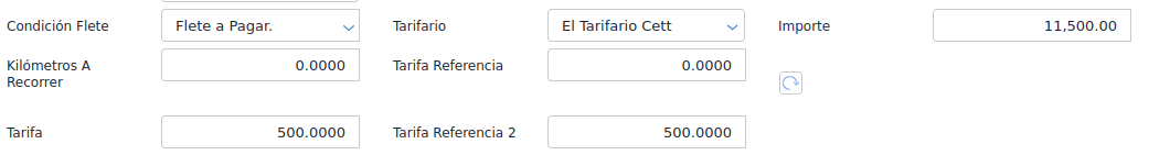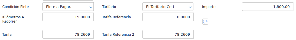 Por ende, cuando se genere la recepción de fletes, se va a calcular el producto de los kilómetros del documento de traslado por el precio indicado en el tarifario.