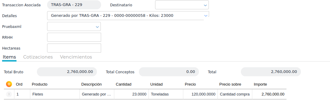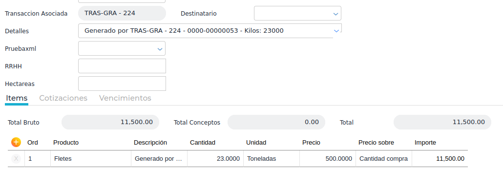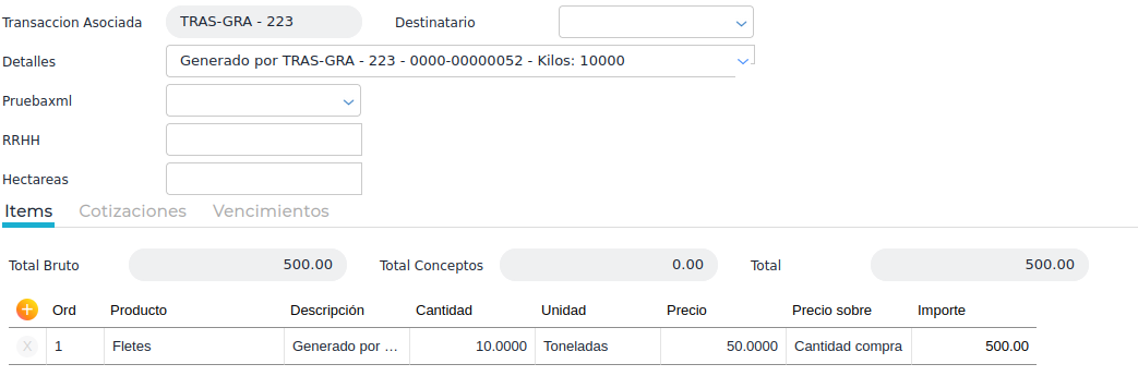 En la siguiente captura se puede ver cómo quedaría reflejada la recepción de fletes automáticamente: