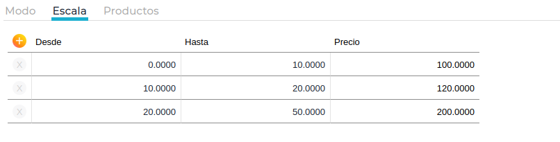 Para finalizar, la última opción en el modo de cálculo por escala kms es escala por rango en KM/UNIDAD.