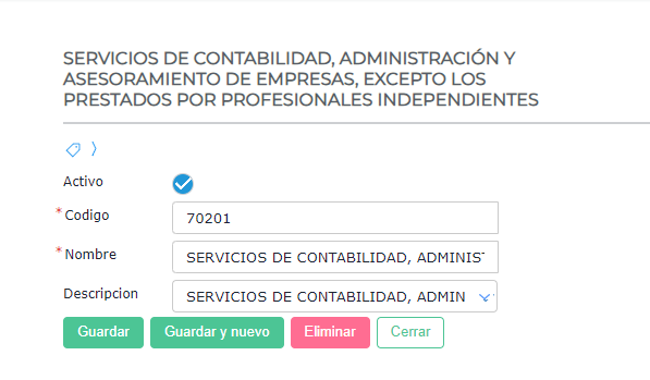 - Debe tener un valor en el campo Descripción