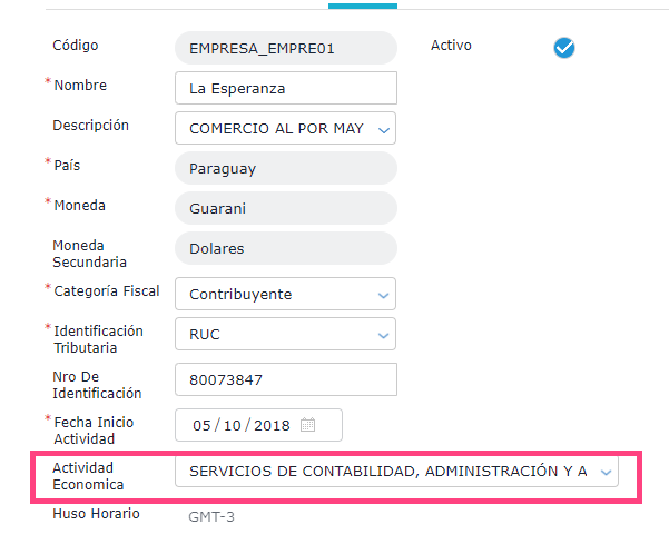 En el maestro de empresa se debe configurar: