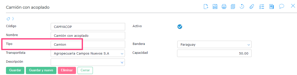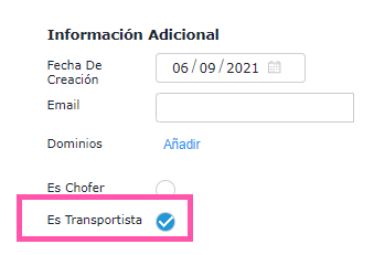 El transportista es un proveedor que tiene activo el check Es transportista