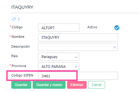 En el mastro de localidades se debe completar el campo Código SIFEN con el valor correspondiente indicado en esta tabla