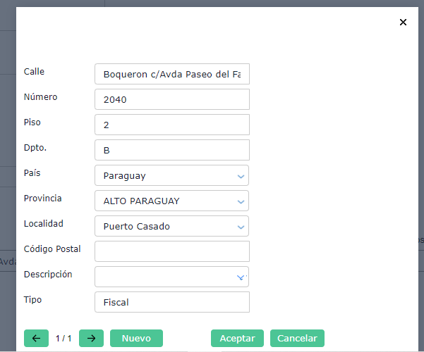 - una dirección de tipo Fiscal