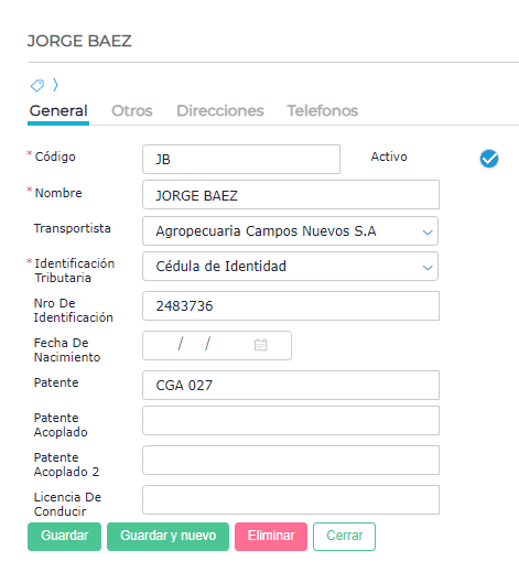 El chofer debe tener cargados los siguientes datos de forma obligatoria:
