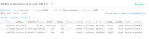 Resultado en el Informe: La columna “Cantidad vinculada” mostrará 120 en ambas líneas de recepción.