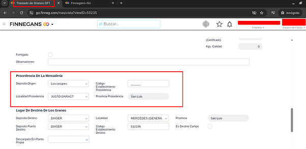 - Buscar la provincia que se utilizó en el traslado (en este ejemplo, San Luis).