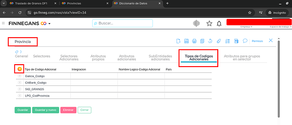 - Dentro de la solapa “Códigos adicionales”, corroborar que aparezca el código agregado (LPG_CodProvincia).