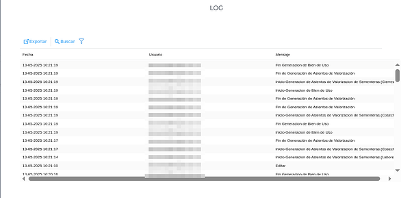 Los elementos que se habrán valorizado serán los insumos y costos de labor generados por los partes de labor cargados en el período seleccionado. Por último se generan los asientos: