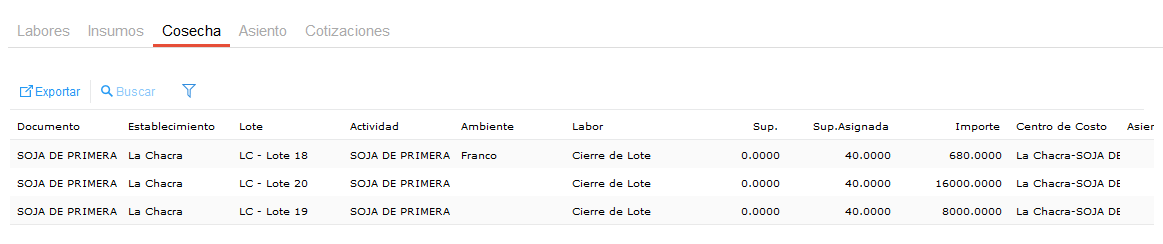 Importe: El sistema indica el costo de la labor de cosecha para ese lote.
