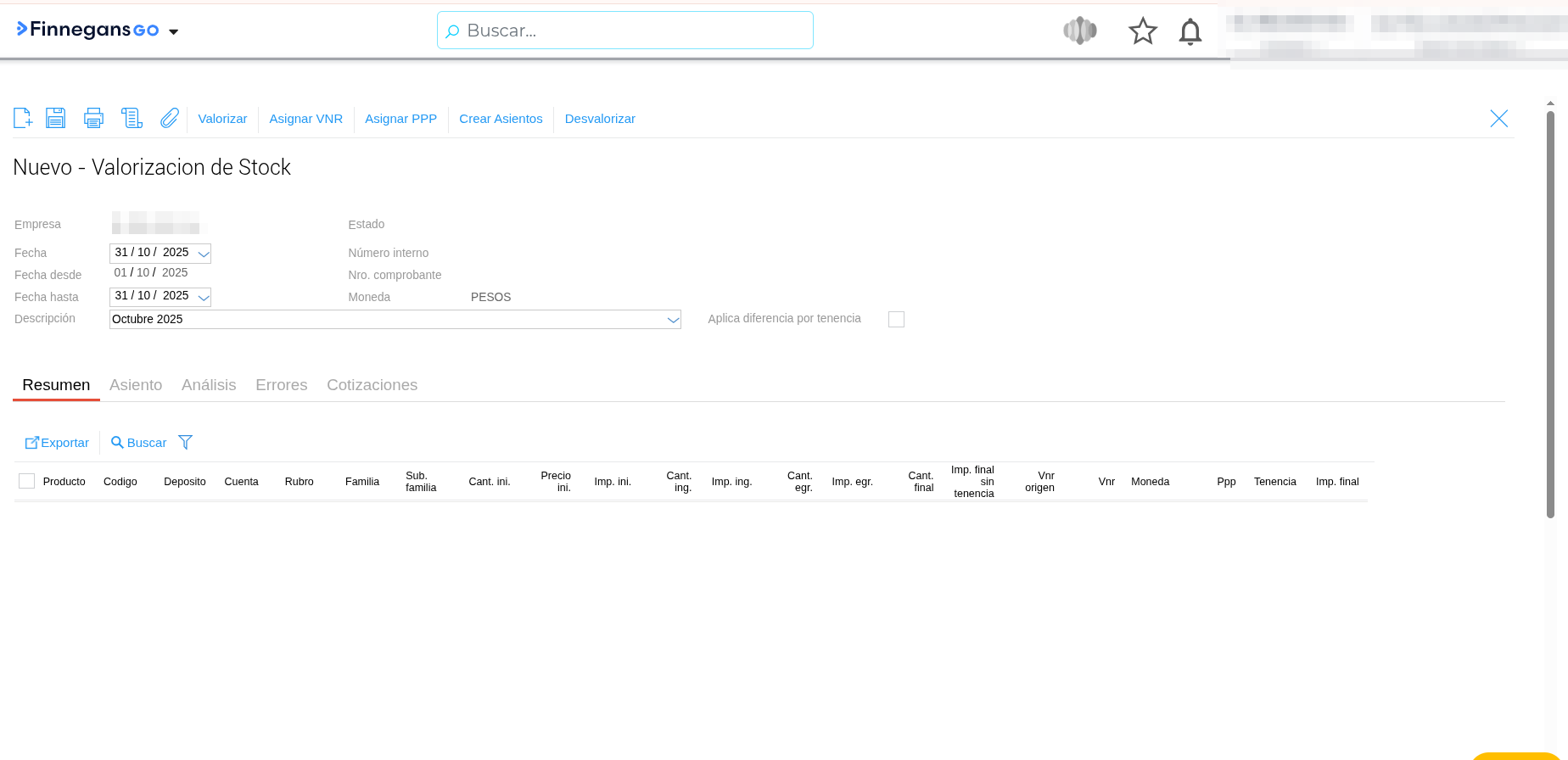 - Crear la Valorización: Inicie el proceso de creación de la valorización de stock de forma habitual.
